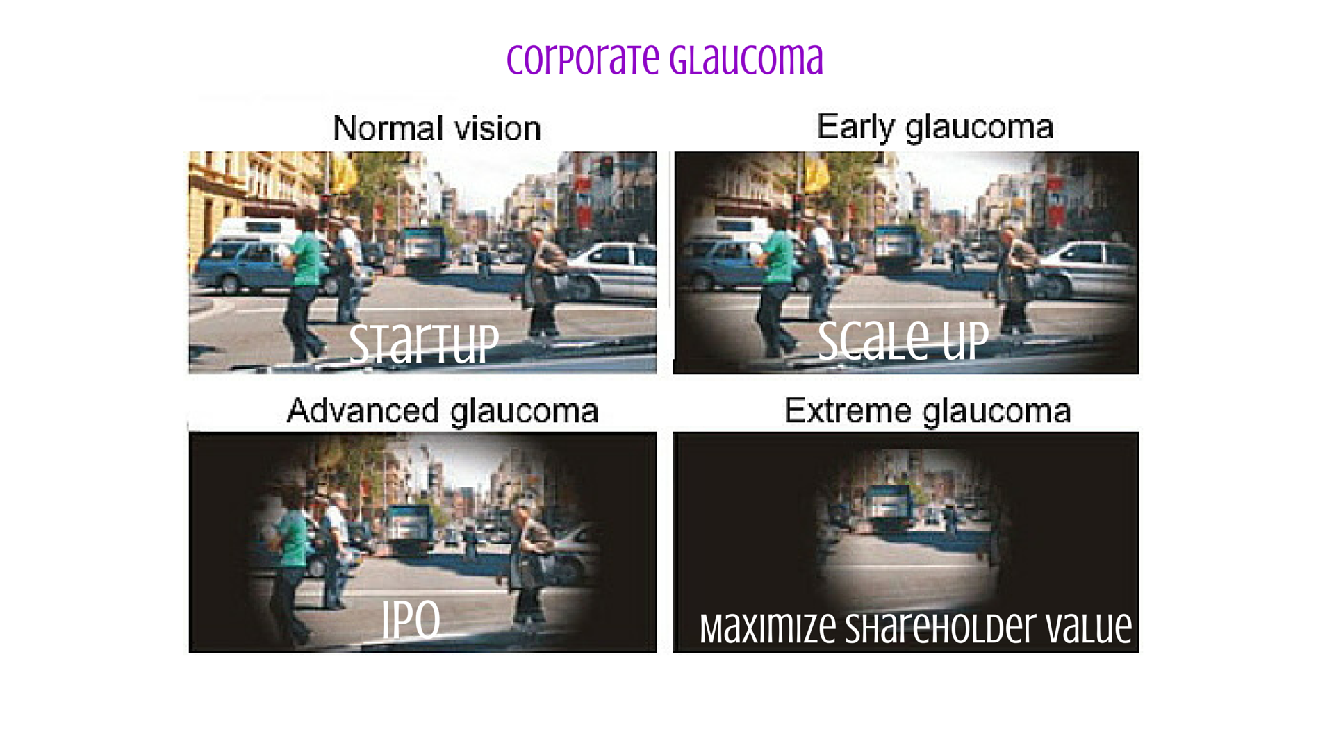 It inspired this graphic I made on Canva. I call it corporate glaucoma. Essentially, this is a mash up of the Innovator's Dilemma and Lynn Stout's The Shareholder Value Myth (or 'the dumbest idea in the world" - Jack Welch).
