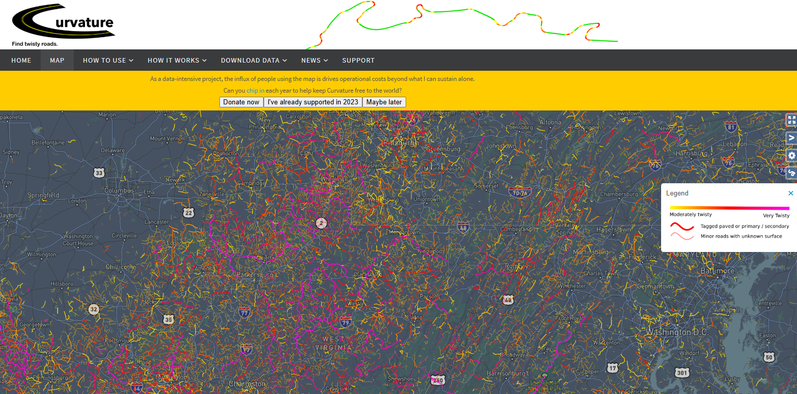 Combines what you get from Curvature and Motorcycle Roads while adding GPS.